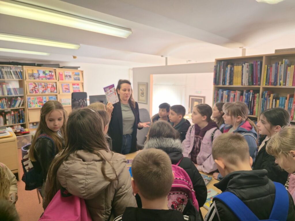 U Knjižnici i čitaoni „Fran Galović“ knjižničarka Iva Gašpar upoznala je učenike s radom dječjeg odjela knjižnice te im predstavila zanimljive knjige, dječje časopise, enciklopedije i zvučne knjige.